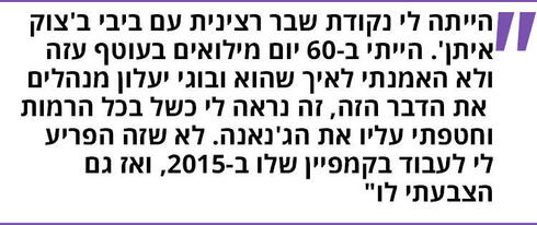 “לעבוד בקמפיין זה אף פעם לא מפריע, ולמה הצבעתי לו? כי היה לי חשש רציני שבוז’י וציפי ינצחו ונפלתי לספין הזה של ‘להצביע למפלגה הגדולה’, שמאז אני לא נופל אליו. אבל לא יצא לי לעבוד לצד ביבי בכלל. במסגרת העבודה על הקמפיין ראיתי אותו אולי פעמיים, חוץ מזה שהוא שלח לנו הערות כמה פעמים על טקסטים. המשפחה שלו הייתה ממש מנותקת מהקמפיין, אז גם אליהם לא נחשפתי. הייתי עם הצוות שלי, קבוצה מדהימה”.