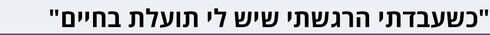 כשעבדתי הרגשתי שיש לי תועלת בחיים. אני אוהבת להיות תחת לחץ ועכשיו הכל על מי מנוחות - אני קמה, מבשלת, מטפלת בילדים, משעמם לי. גם מבחינת שכר נפגעתי בצורה משמעותית, איבדתי בין 3,000־4,000 שקל.