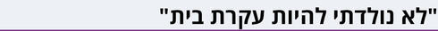 אני נאלצת להיות עקרת בית. קמה בבוקר ומתחילה לבשל לילדים, כשבחיים לא ידעתי להכין להם כריך. ממשיכה לכביסות וניקיונות. ערימות של כביסות שאני לא מצליחה להתמודד איתן. הקמתי אירועים של מיליונים והיום אני לא יכולה להתמודד עם שתי מכונות כביסה, זה גדול עליי. אני רגילה לקום בבוקר והכל נקי, ועכשיו אני קמה ורואה ערימה של כלים כי לא עשיתי ובעלי לא עשה כי הוא חושב שאני אמורה לעשות את זה. זה גומר אותי - אני צריכה להתעסק עם הקשקוש הזה עכשיו?!