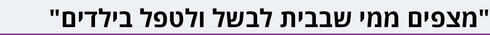הייתי מתחילה לעבוד כל יום בשבע וחצי בבוקר עד רבע לחמש ואז אוספת את הילדים מהגן. ועכשיו אני עקרת בית - כל היום מנקה, מבשלת לילדים, עושה כביסות, במיוחד עכשיו, כשאני כמעט 14 יום בבידוד עם הילדים. השמיים נפלו עליי. כשהילדים הלכו למסגרות היו לי כמה שעות של שקט, אבל עכשיו אני כל הזמן איתם - משש וחצי בבוקר עד שמונה בערב. מאישה שיושבת מול לפטופ הפכתי לגננת. הם שוברים את המשחקים כי כבר לא בא להם לשחק איתם, וכמה אפשר לראות טלוויזיה ויובל המבולבל, כמה אפשר לשחק במטבח עם הכלים, הם רוצים שגרה. אני גם לא יכולה לעשות משהו אחר חוץ מלטפל בילדים, אני לא יכולה לדבר בטלפון, רק כשהם ישנים שעתיים בצהריים, כי הם מאוד קטנים ושובבים - הם זורקים שמן על הרצפה, הם הרסו את המקרר ואת התנור.