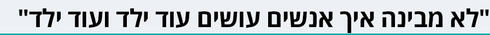 כל ההתפרצות הזו הייתה מול הילדה שלי, וזה הטריף אותי. זה שתוקפים אותי - מילא. אני אדם בוגר ואני יכולה להתמודד עם הבחירות שלי, אבל זה לא הוגן להשמיע דברים כאלה לילדה בגיל הרך. לא מבחינת העובדה שאין לה אחים, אלא עצם העובדה שמישהו צורח על אמא שלה שהיא אמא גרועה. בנקודה הזו איחלתי לה "יום נעים" ולקחתי את הבת שלי משם, כי ראיתי שזה לא ילך לשומקום. זה לא המקום שלי לשכנע אותה שהבחירה האישית שלי נכונה לי. אלה החיים שלי! היא תגדל לי את הילדים? היא תפרנס אותם? מאיזה מקום אתה מגיע לאדם זר ולא רק מעביר ביקורת על החיים שלו, אלא גם מסביר לו מה הוא צריך לעשות, ואם הוא לא עושה בדיוק את מה שאתה חושב אז הוא אדם פסול שצריך להפעיל נגדו רשויות?"