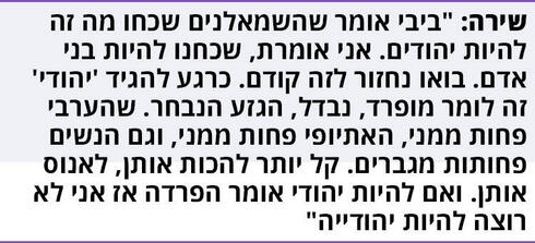 שירה: "אני מרגישה גלותית כי אני אחת ויחידה ואין עוד אחת כמוני".