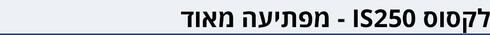 המשפחתית של לקסוס, ה-IS250, היא אחת המכוניות הראשות של המותג ששווקו כאן. היא מציעה רשימת אבזור ראויה, נהנית מאמינות מופלאה וכוללת במפתיע יכולת דינמית וביצועים גבוהים ממה שמקובל לצפות - גם כיום - ממותג היוקרה היפני. צריכת הדלק של מנוע הבנזין גבוהה יחסית.