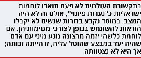 "השתמשתי לא פעם בעובדת היותי אישה", אמרה הלוחמת "יעל" בריאיון עיתונאי, "אבל מעולם לא השתמשתי בגופי כדי להתקבל ולעורר אמון במקומות שבהם פעלתי. הרגשתי ששמירת הגבולות היא דווקא היתרון של הנשיות, וזה היה המסר שקיבלתי מהממונים עלי. אף פעם לא ציפו ממני להיכנס למיטה במסגרת התפקיד, המסר היה הפוך. יותר מכך, זו הייתה המדיניות".
