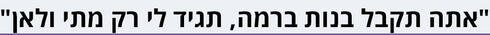 נציג: "אל תאמין אחי לשום אתר ולשום תמונה, כי הכל חארטה. אני אומר לך שאתה תקבל בנות ברמה, תגיד לי רק מתי ולאן".