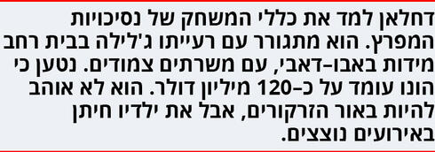 האם הוא בכלל יכול לשוב לשטחי הרשות? דחלאן עצמו סירב להתראיין השבוע. "עכשיו אני לא מדבר, בטח לא עם ישראלים", נמסר מטעמו. אבל נאמנו הקרוב של דחלאן, סופיאן אבו־זיידה, מסכים לדבר, בזהירות מדודה. "אבו־מאזן וידידיו מאשימים עכשיו את דחלאן שהוא זה שניסח את 'הסכם אברהם' בין הנסיכויות לישראל. וזה לא נכון. הם רוצים להזיק לדחלאן, להזכיר עד כמה ההסכם לא פופולרי אצל הפלסטינים, ולהציג אותו כבוגד ותככן".