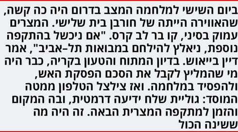 ביום כיפור ב־14:00, שבת 6 באוקטובר, כשהצופרים החלו ליילל, היו בוודאי כמה אנשים באמ"ן שהבינו עד כמה גוליית צדק, וכמה חבל שלא הקשיבו לו. בפעם הבאה זה כבר לא יקרה. הידיעה שימסור גוליית תחולל מפנה במלחמה כולה.