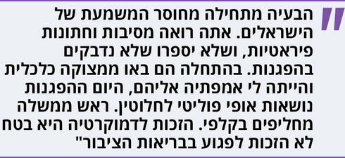 פנינה: "אנחנו משלמים מחיר על זה שמערכת הבריאות לא יכולה לספוג את כמות החולים הקשים. היו צריכים להשקיע יותר בבתי חולים כדי שיהיו יותר מיטות ויותר צוותים רפואיים – כי אז אולי יכולנו להמשיך את חיינו כמעט כרגיל. אולי צריך סגרים נקודתיים".