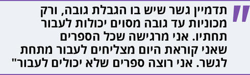 "תדמיין גשר שיש בו הגבלת גובה, שרק מכוניות עד גובה מסוים יכולות לעבור תחתיו. אני מרגישה שכל הספרים שאני קוראת מצליחים לעבור מתחת לגשר. אני רוצה ספרים שלא מצליחים לעבור".