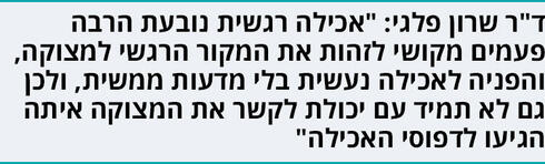 "בזמני מתח, לחץ או קושי, אנשים רבים פונים אל המקרר או אל המזווה כדי 'לנשנש' משהו, מחפשים נחמה באוכל טעים - פעמים רבות פחממתי ומתוק - שגורם לתחושה ראשונית של הקלה. זו התנהגות אנושית ונורמטיבית, וחשוב לקבל אותה באופן לא שיפוטי כאשר היא מתרחשת באופן מתון.