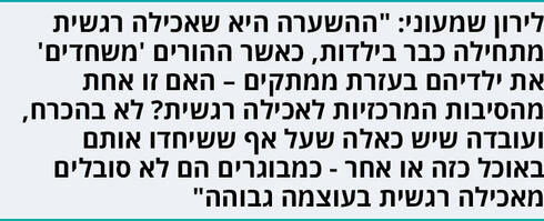 "שאני עושה משהו לא בסדר, ניגשת לחפש אוכל למרות שאני לא באמת רעבה ושאולי כדאי שאבדוק עם עצמי האם באמת מתחשק לי את החטיף הזה עכשיו - או שזה בעצם סוג של נחמה על יום קשה".