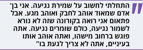 "גם זה יבוא, כנראה, כשאני אהיה מוכן. ברור שהתחלתי לחשוב על זה. אני בנאדם שמאוד אוהב לחבק ואוהב מגע. אבל פתאום אני רואה בקורונה שזה לא נורא לשמור נגיעה, כולם שומרים נגיעה. אתה פוגש ברחוב מישהו, ואתה אוהב אותו בעיניים, אתה לא צריך לגעת בו".