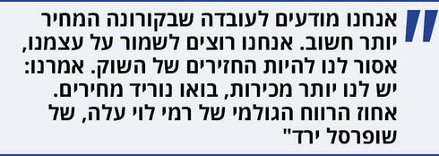 קילשטיין מושיב אותי מול המצגות הפנימיות של הרשת ומדגים לי איך שופרסל הורידה מחירים של מוצרים בהשוואה לתקופה שלפני הקורונה בשיעור גבוה יותר מהורדות המחירים שהיו אצל רמי לוי (אם כי רמי לוי עדיין היה זול יותר בסקרי החגים). "הרשת מודעת לעובדה שבקורונה המחיר יותר חשוב", הוא אומר. "אנחנו רוצים לשמור על עצמנו, אסור לנו להיות החזירים של השוק. אמרנו: יש לנו יותר מכירות, בואו נוריד מחירים. אחוז הרווח הגולמי של רמי לוי עלה, של שופרסל ירד. יש פחות תלונות. מתי שופרסל הייתה בכותרות לאחרונה בנושא המחירים? את ויקטורי האשימו בסקרי החג שהוא מחליף מחירים, רמי לוי ספג אש על רשת 'רמי לוי בשכונה'. הלקוחות שלנו מקבלים מחירים הגונים, וזו לדעתי צריכה להיות האסטרטגיה. זה מביא נאמנות".