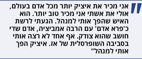 "איציק היה בשבילי הרבה יותר מבוס מהרגע הראשון. למדתי ממנו את תורת היסודיות. את מוסרת לו דפים, הוא מביא אותם בבוקר ממורקרים. הוא ערכי בצורה יוצאת דופן. אין אצלו דבר כמו טובתי האישית לפני שופרסל, וזה אחד מהדברים שחסרים בעולם העסקי. הנשמה. איציק הוא הנשמה של שופרסל, ואמרתי לו זאת. אני מכיר אותו יותר מכל אדם שבעולם, אולי את אשתי אני מכיר טוב יותר. הוא אדם גדול פיזית, חיצוניותו מטעה. יש את ההופעות הפומביות, ויש את האנושיות והנשמה הענקית שלו במפגשים של ארבע עיניים. הוא האיש שהפך אותי למנהל. הגעתי לרשת כ'פרא אדם' עם הרבה אמביציה, אדם שדי חושב שהוא צודק. אף אחד לא רצה אותי בסביבה השופרסלית של אז. איציק הפך אותי למנהל, חינך אותי. ראיתי איך הוא חושב על אנשים, למדתי מערכות יחסים עם אנשים".