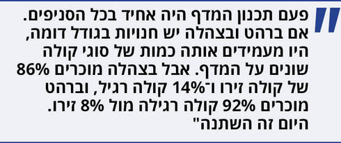 "פעם תכנון המדף היה אחיד בכל הסניפים. אם ברהט ובצהלה יש חנויות בגודל דומה, היו מעמידים אותה כמות של סוגי קולה שונים על המדף. אבל בצהלה מוכרים 86% של קולה זירו ו־14% קולה רגיל, וברהט מוכרים 92% קולה רגילה מול 8% זירו. היום זה השתנה.