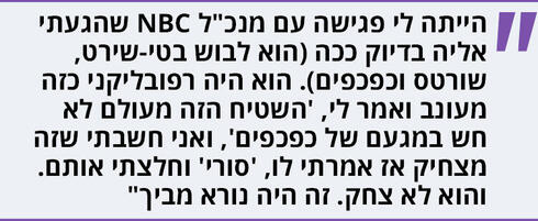 "לא ממש. הייתה לי פגישה עם מנכ"ל אן-בי-סי שהגעתי אליה בדיוק ככה (הוא לבוש בטי-שירט, שורטס וכפכפים). הוא היה רפובליקני כזה מעונב ואמר לי, 'השטיח הזה מעולם לא חש במגעם של כפכפים', ואני חשבתי שזה מצחיק אז אמרתי לו, 'סורי' וחלצתי אותם. והוא לא צחק. זה היה נורא מביך".