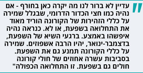 "כן. לא פעלנו מספיק מהר בכל הנושא של בניית הכוח לתחקור וקטיעת שרשראות ההדבקה. ואת זה אני אומר בלי לפגוע בעבודה המסורה של אחיות בריאות הציבור, שעשו מעל ומעבר ליכולותיהן. גם בקהילה העומס שהטלנו על הקופות היה גדול מדי. בשיא התחלואה, הן טיפלו ב-60 עד 70 אלף חולים. עכשיו הורדנו מהן, בכך שקיצרנו את ימי הבידוד והגבלנו את המעקב לאוכלוסיות בסיכון".