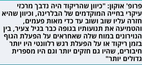 "קורע לב לראות איך המחלות הניווניות של המוח גורמות לאנשים להתנתק מעצמם. הרי הבנאדם עדיין בפנים, הוא עדיין שם. הזיכרונות שלו שם, המילים, הכוונות, הרצונות, הוא רק לא יכול להגיע אליהם ולשלוף אותם מקופסאות בתוך המוח. וגם הבלרינה עדיין זוכרת את התנועות, ואנחנו רואים איך המוזיקה מסייעת לה לגשת אליהן", אומר פרופ' אדוארד שטרן, גם הוא מהמחלקה לחקר המוח באוניברסיטת בר-אילן ועמיתו של פרופ' אוקון, לאחר שאנחנו מחליפים רשמים מרגשים בעקבות הצפייה המשותפת בסרטון הבלרינה.