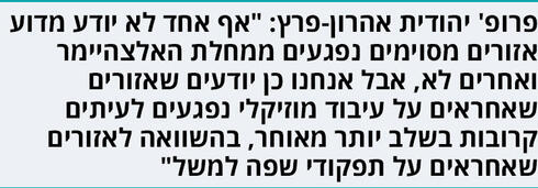 "בתנאי שמקפידים על בדיקות שנתיות, גם קוגניטיביות, כדי לאתר את התחלת המחלה בשלבים מוקדמים. למה את האוטו לוקחים כל שנה למוסך ואת הבנאדם לא? בעיניי אלצהיימר היא מגפה יותר קשה מהקורונה, והיא לא רק מחלה של החולה אלא כמו כל המחלות הדמנטיות האחרות היא מחלה של כל המשפחה, וצריך לדעת איך להקל על משפחות. יש הרבה קבוצות תמיכה שעוזרות", הוא אומר, ובהקשר זה מזכירה פרופ' אהרון-פרץ את עמותת "עמדה", שמסייעת רבות למשפחות ולחולים.