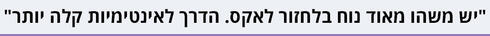 "יש משהו מאוד נוח בלחזור לאקס", מוסיפה טלי. "את מכירה את האדם. אין ריאיון קבלה של דייט רגיל, הדרך לאינטימיות רגשית יותר קלה, חצי רגל כבר בפנים. במקרה שלי גם עברו עשרות שנים, לא היו שום משקעים ונשארו רק הזיכרונות הטובים".