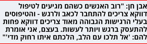 "רוב האנשים כשהם מגיעים לטיפול דווקא צריכים להתחבר לכאב ולרגש - ואילו טיפוסים בעלי רגישות גבוהה מאוד צריכים לעשות בדיוק ההיפך. בעצם, אני אומרת להם: 'אל תלכו עם הלב, הלכתם איתו רחוק מדי'".