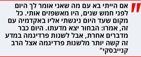 "אין לי כיום מה להפסיד. אני קיבלתי את התארים והפרסים שלי, מכבדים אותי באוניברסיטאות בחו"ל, וגם שם המגמה משתנה ומוכנים לדבר על זה, גם אם בהרבה מקומות עדיין אומרים: שמע, תבטיח שהפיל שבחדר נשאר בחדר, ואל תצטט אותנו".