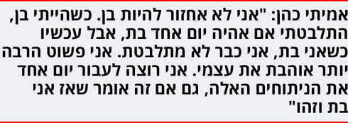 "שאני בדיוק כמו קודם, כשלא הייתי בת. רק שעכשיו אני מרגישה טוב יותר".