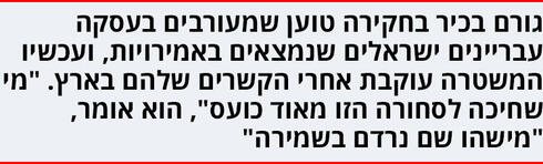 "אנחנו יודעים שהמכולה הזו פוספסה במסלול שבין נמל אשדוד למחסנים בקריית־מלאכי", אומר בונה, "ואנחנו יודעים שמעורבים ביבוא הזה שני ארגוני פשיעה גדולים, אחד מהדרום והשני מהמרכז". גורם בכיר במשטרה המעורה בחקירה טוען כי לפי החשד, חלק מהמממנים של העסקה הזו לא נמצאים בישראל. מדובר בעבריינים ישראלים שנמצאים באמירויות ועכשיו המשטרה עוקבת אחר קשריהם עם הארץ. "אנחנו יודעים שמי שחיכה לסחורה הזו מאוד כועס", אומר אותו גורם בכיר, "רותח מזעם על הפדיחה הזו. זו רעידת אדמה בעולם התחתון, מישהו שם נרדם בשמירה וזה יכול להוביל למלחמת עולם בין הארגונים שמטילים את האשמה לפשלה הזו אחד על השני".