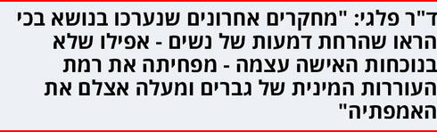 "בעבר נראה היה שגברים לא בוכים כלל או שבוכים בלילה בסתר. בשנים האחרונות המציאות הזו השתנתה, והדור החדש דווקא מעודד גברים לבטא את הרגשות שלהם ולא לנסות להיות סופרמנים. אגב, מחקרים אחרונים שנערכו בנושא הדמעות הצביעו על כך שהרחת דמעות של נשים - אפילו שלא בנוכחות האישה עצמה - מפחיתה את רמת העוררות המינית של גברים, ומנגד מעלה אצלם את האמפתיה", מוסיפה ד"ר פלגי. "ואכן, בשנים האחרונות אפשר לראות לא מעט גברים שבוכים בעת הלידה לצד הנשים שלהם, במצבי אובדן ומשבר וגם בסרטים מרגשים".