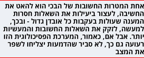 "אגב, לרוב בכי הקשור לדיכאון יאפיין דווקא אנשים שסובלים מדיכאון מתון יחסית, בעוד שאלו שחווים דיכאון משמעותי יותר יתקשו הרבה פעמים להביע את רגשותיהם, ובתוך כך גם לבכות".