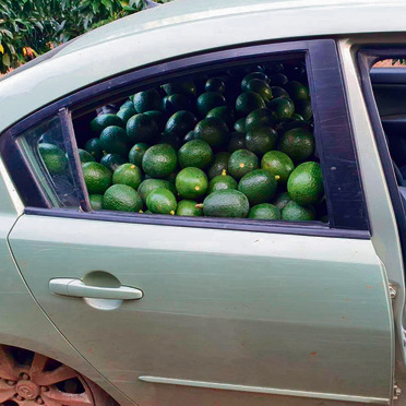 קיבוץ גליל ים, שבוע שעבר. גנב אבוקדו נתפס על חם במטע. התמונות מהזירה חריגות, גם ביחס לחגיגות בענף. רואים בהן 680 קילו דחוסים בתוך אוטו. בגז', מושבים, עד הגג. יש מצב שגם בתא כפפות דחף כמה.