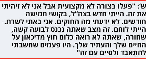 "כשחלקתי את המצוקה עם החבר ממצ"ח ואמרתי לו שאני רוצה לראות קב"ן, הוא המליץ לי לא ללכת כי זה יירשם בפרוטוקול. כאילו שזה יעשה לי שם רע. זה חרטא, אבל אז לא ידעתי את זה".