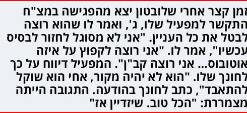 "הם ידעו שהלכתי למצ"ח אבל לא בדיוק ידעו למה. הם חשבו שזה לא משהו משמעותי, שזה סתם, להודיע על איזו פעילות ואז נגמר העניין. הייתי חתום שאסור לי לדבר עם אף אחד וכיבדתי את זה עד הסוף".