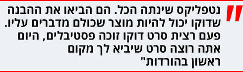 "נטפליקס שינתה הכל בצורה מטורפת. הם הביאו את ההבנה שדוקו יכול להיות מוצר שכולם מדברים עליו. פעם רצית סרט דוקו זוכה פסטיבלים, היום אתה רוצה סרט שיביא לך מקום ראשון בהורדות ב־HOT".