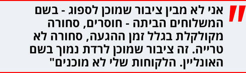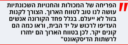 "זה רק עושה לנו טוב בטווח הארוך. לקנות בזול זה צורך בסיסי שלא ייעלם. בגלל פחד הקורונה אנשים העדיפו לרכוש על יד הבית, וכך התברר להם כמה הם קונים יקר, ולכן בטווח הארוך הם יחזרו לרשתות הדיסקאונט, למעט התל־אביבים שהם קהל ייחודי ללא רכב ועם הרבה צרכנים יחידים. בהסתכלות שלנו אנחנו כבר רואים את סוף הקורונה".
