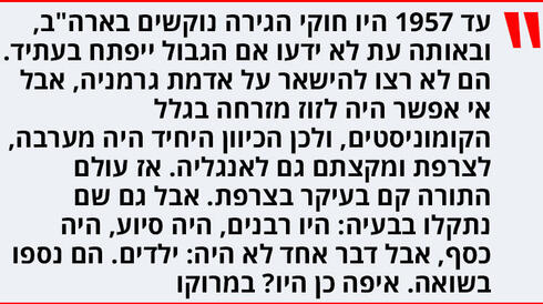לדברי ד"ר לופו, לאחר השואה מצאו עצמם אנשי הוועד בבעיה קשה: "עד 1957 היו חוקי הגירה נוקשים בארה"ב, ובאותה עת לא ידעו אם הגבול ייפתח בעתיד. הם לא רצו להישאר על אדמת גרמניה, אבל אי אפשר היה לזוז מזרחה בגלל הקומוניסטים, ולכן הכיוון היחיד היה מערבה, לצרפת ומקצתם גם לאנגליה. אז עולם התורה קם בעיקר בצרפת. אבל גם שם נתקלו בבעיה: היו רבנים, היה סיוע, היה כסף, אבל דבר אחד לא היה: ילדים. הם נספו בשואה. איפה כן היו? במרוקו".