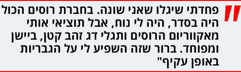 "פחדתי שיגלו שאני שונה. בחברת רוסים הכול היה בסדר, היה לי נוח, אבל תוציאי אותי מאקווריום הרוסים ותגלי דג זהב קטן, ביישן ומפוחד. גם ברור שזה השפיע לי על הגבריות באופן עקיף. יכול להיות שבפורנו הרגשתי שייך כי זו תעשייה של חו"ל ורוב המצולמים לא עברו ברית מילה, אז הרגשתי בנוח. היום אני שלם עם זה, אפילו מבסוט מהעובדה שההורים שלי הלכו עד הסוף עם ההחלטה שלהם, אבל עדיין שנות הנעורים לנצח ייחרטו אצלי כמשהו שלא באמת חוויתי עד הסוף מבחינה מינית. לא עם נשים ישראליות לפחות".