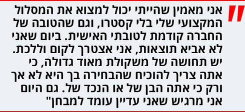 "זה לא לגמרי מדויק. כבר מכיתה ה' ההורים שלי שלחו אותי לעבוד בקסטרו בחופש. גם כשמוניתי למנכ"ל, זה אחרי שבע שנים שבהן מילאתי כמה תפקידים בחברה. זה היה מתוך קריאה מפוכחת שלא נכון לחברת אופנה ששני האנשים שעומדים בראשה יהיו אנשים מעל גיל 60".