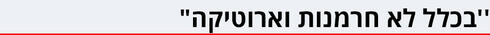 "אני הייתי משתמש במילה חופש. החופש לכתוב מה שאתה רוצה, איך שאתה רוצה, בלי להתחשב בכלום", אומר הסופר רון דהן שכתב את אחד הסיפורים המטלטלים בקובץ. הוא וחבריו ממש לא מתאמצים לשלוח את קוראיהם לענג את עצמם ביד אחת מתחת לשמיכה. את זה תחפשו בחמישים גוונים של ספרות המונית שעטופה בצלופן מרשרש. הספר שלהם, הם אומרים, נמצא על מדף גבוה הרבה יותר והליבה שלו היא בכלל לא חרמנות וארוטיקה, אלא שפה וכתיבה.