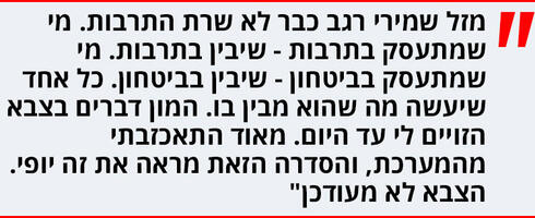 “מזל שמירי רגב כבר לא שרת התרבות. היא לא דוגמה למה ששרת תרבות אמורה להיות. מי שמתעסק בתרבות – שיבין בתרבות. מי שמתעסק בביטחון – שיבין בביטחון. כל אחד שיעשה מה שהוא מבין בו. אני מקווה מאוד שהסדרה הזו תיצור שיח. אין לי בעיה שאנשים לא יסכימו עם דברים כל עוד הם מגיעים מנומקים, ולא אוסף קללות. המון דברים בצבא הזויים לי עד היום. כל הפן הביורוקרטי היבש, אין בו היגיון. הייתי מפיקה והיו תחתיי חיילים מלהקות צבאיות ומתיאטרון צה”ל, והייתה לי חיילת שאבא שלה נפטר בנסיבות טרגיות, וכשהיא חזרה לצבא היא ביקשה לראות קב”ן. הייתי צריכה להתווכח כדי שיקבלו אותה. לא יודעת מה היה חשוב יותר מילדה בת 18 שאבא שלה מת. או חייל שהיה במצב נפשי קשה וראש המדור לא הסכימה לקבל אותו לשיחה כי היה לו זקן. אז כן, מאוד התאכזבתי מהמערכת. ככה צה”ל מפספס המון אנשים טובים. הסדרה הזאת מראה את זה יופי. הצבא הוא לא מעודכן, גם לא לבני 18 שמגיעים אליהם. אלה לא בני ה־18 מתקופת הפלמ”ח. הצבא צריך לעדכן גרסה”.