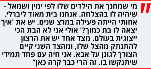 הדמיון הזה נגמר ברגע שמתחילים לדבר על פוליטיקה. האב מאגף מימין, הבת חובטת משמאל. לא האידיאל של שושלת פוליטית, אבל לטענתה גם לא בדיוק סיבה לשבור צלחות בארוחת ערב. "מי שמחנך את הילדים שלו לפי ימין ושמאל – שיהיה לו בהצלחה", היא אומרת. "אנחנו בית מאוד ליברלי. אחותי הבכורה דניאלה הייתה פעילה במרצ שנים. גדלתי בתוך בית מעורבב. זה אף פעם לא התנגחויות, יש דיונים. תמיד כשהיו לי תהיות לגבי דברים מסוימים – ידעתי שאני יכולה לשאול את אבא שלי, לשאול את אחותי ואז להרכיב תמונה משל עצמי".