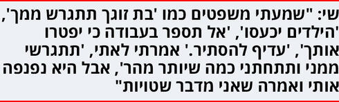 "בהתחלה לא הסכמתי. רציתי לשכוח את מה שהיה ולהמשיך בחיינו, גם בגלל הבושה. רציתי חיים נורמליים, אבל שי שכנע אותי. תמיד הוא משיג מה שהוא רוצה".
