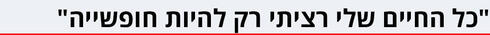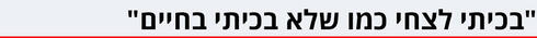 התינוק מנמנם עליה. "תראי איך הוא ישן באגרופים קפוצים", היא אומרת, "כמו אבא שלו. צחי שנים היה ישן במין היכון כזה, דרוך לקראת ההתקפה. הייתי מתעוררת באמצע הלילה ומנסה לפתוח לו את האגרופים, להרגיע לו את הגוף. פעם דיברנו על זה, שהוא ישן כאילו שהוא עדיין בצבא, בדובדבן. והוא צוחק עליי שגם אני דרוכה ומוכנה לפעולה כל הזמן, עם איך שאני יושבת על קצה הכיסא. ולכן אני יודעת שאני אסתדר גם הפעם. צחי ואני מדברים על לכתוב סדרה על הסיפור שלנו. אני רוצה להרים מופע, אולי סטנד־אפ. אני עוד מעט אחזור לעבוד ב'דמוקרט TV', זו הפינה היקרה והאהובה שלי, המקום שבו מותר לי להגיד מה שאני חושבת, וזה עושה רייטינג כמו של ערוץ 20, שזה לא רע. נכון. יכול להיות שהפרק של עיתונאית ואשת אקטואליה הוא כרגע בהולד, לפחות בטלוויזיה המיינסטרימית. יכול להיות שהתפקיד שלי בתקשורת המיינסטרימית אפילו נגמר. אני יודעת שהכל זה חלק מהדרך שלי, מאמינה שכל אחד בסוף נוחת על הכיסא שהוא צריך לנחות עליו".