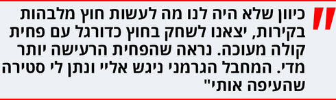 "כן. מודה באשמה. בן אדם אוהב להראות שהוא מאה אחוז בסדר, אבל מי שעבר משהו כמו מה שעברתי אף פעם לא יהיה מאה אחוז בסדר. התביישתי. היום אני בקצה השני של הסקאלה. חשוב לי לומר לכולם שאין בעולם אדם נטול מגבלה כלשהי ושמוגבלות היא לא סיבה לבושה. הבנתי את זה לפני יותר מעשר שנים, כשהתחלתי להתנדב בעמותת 'שלווה' בירושלים שמטפלת בילדים עם מוגבלויות.