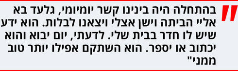"אני מאמינה לך", אמו ממהרת להרגיע. "תמיד האמנתי לך. גם כשהייתי צריכה לרוץ איתך לרופאים ולפסיכולוגים ולכל מיני מומחים שלא הבינו מה עובר עליך, אני האמנתי שאתה לא סתם מדמיין".