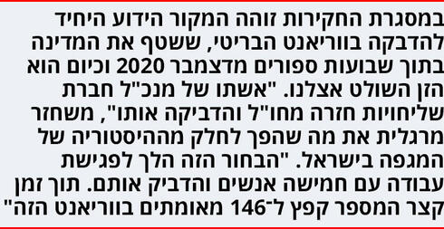 שכעבור תקופה ארוכה יחסית, מעל שלושה ימים, נבדקו והתגלו כחיוביים. מספיק אחד שיביא איתו וריאנט שעמיד בפני החיסון כדי להחזיר אותנו לזמנים אחרים".