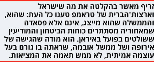 "השסעים האלה פוגעים באיראנים יותר מכל פעולה שלנו", מדגיש הגורם. "בעיניי הם מסמלים את תחילת ההתפוררות הסופית של שלטון הרשע שם. אני לא יודע להגיד מתי ואיך זה יקרה, אבל ראינו את זה גם במקומות אחרים — הכל נראה חזק ויציב עד שהוא קורס ואז זה מתרחש מהר מאוד וכולם מופתעים. לדעתי הסוף שלהם קרוב יותר ממה שנראה. לצערי, החתימה הצפויה בשבוע הבא על הסכם הגרעין עם ארצות־הברית, תרחיק אותו במידת מה".
