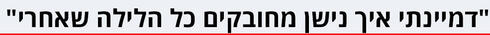 "זה בדיוק מה שלא רציתי. רציתי פעם ראשונה מיוחדת ורומנטית, עם מישהי שתהיה החברה שלי, ודמיינתי איך נישן מחובקים כל הלילה שאחרי. ואז קרה מה שקרה לי".