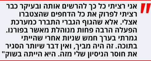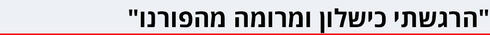 "עברתי בין התנצלות לבין השפלת המבט. הרגשתי כישלון, וגם הרגשתי מרומה מהפורנו. למזלי הגדול הכול קרה מהר, ולפחות גמרתי אחרי החדירה ולא לפניה. אם היה לנו פור-פליי כמו בפורנו, כנראה שהייתי גומר עוד לפני כן".