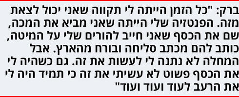 "כל החברים שלי התקדמו, הקימו משפחה, נמצאים בתפקידים בכירים. כולם אנשים אמידים. ורק אני המשכתי להחזיר חובות במשך שנים רבות, אתה לא יכול להתקדם כי יש אחריך שובל של מלחמה פעילה. כשאני נכנסתי לטיפול ברטורנו נכנסתי עם חובות פעילים של 1.6 מיליון שקל. ועד היום אני מתמודד איתם. יש לי עוד כמה מאות אלפים להחזיר.